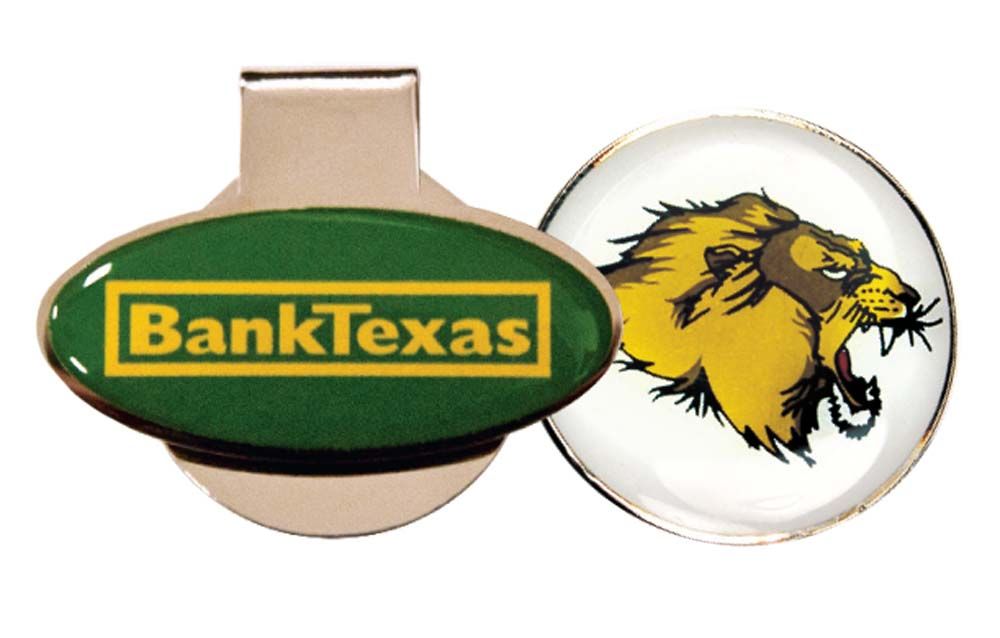 This Double Logo Hat Clip with Ball Marker includes full color logo poly domed on the oval side of the hat clip as well as on the ball marker attached by a magnet. Measuring 1 5/8" x 1 1/16", this golf item will look great at any event or outing and will have everyone talking. Customize this wonderful giveaway to match any occasion!