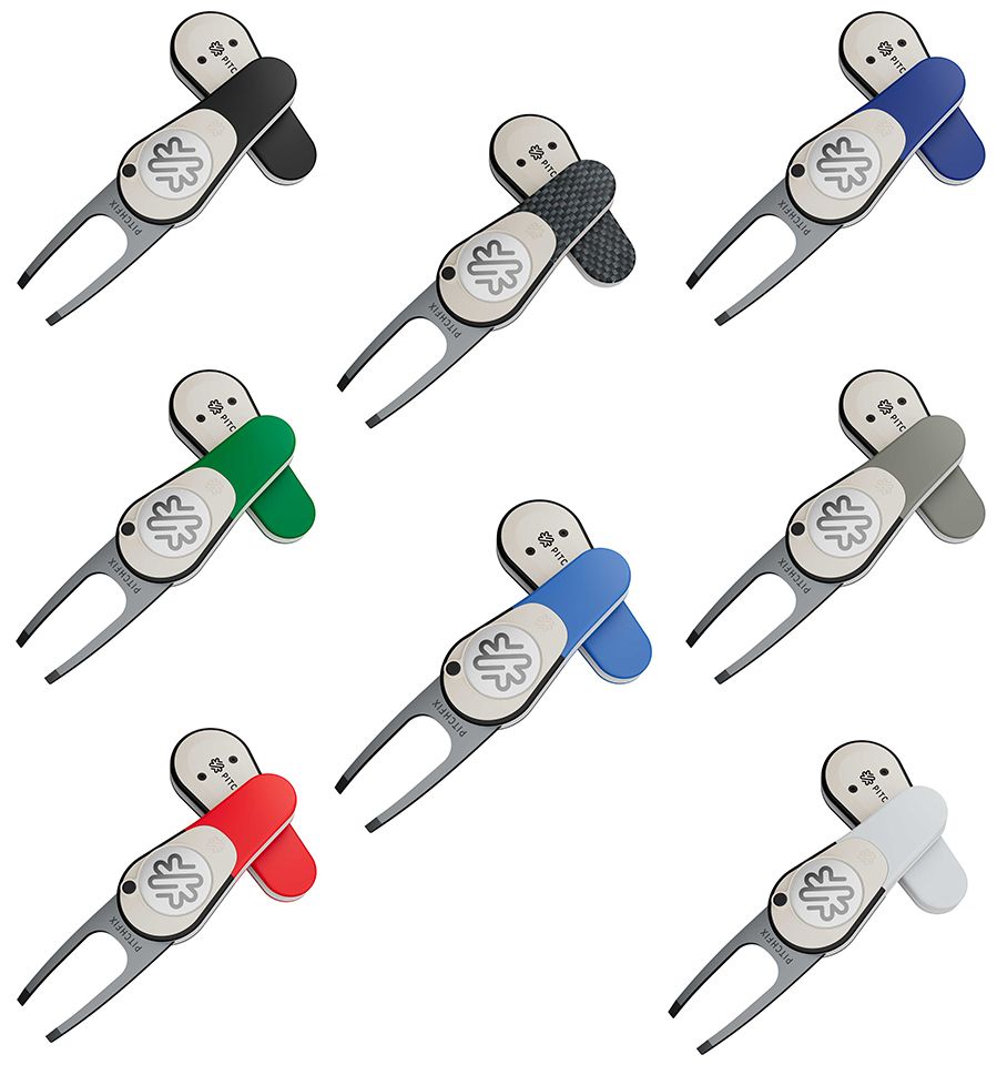 Pitchfix Icon features a removable, full-color logo ball marker and patented switchblade function, allowing for quick and effortless use. Its high-quality ABS handles provide a comfortable grip, while the stainless steel blades offer strength and reliability. mize this tool. Available in 8 color options. This tool includes the Pitchfix ball marker with your full color logo poly domed for increased visibility and ease of use on the course.
