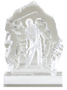 Sculpted glass golf award that comes with an laser engraved plate with up to 3 lines of text.