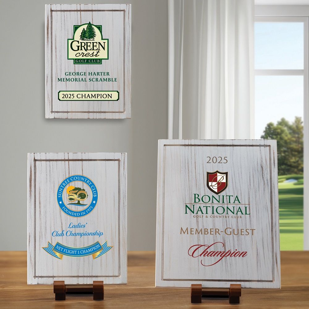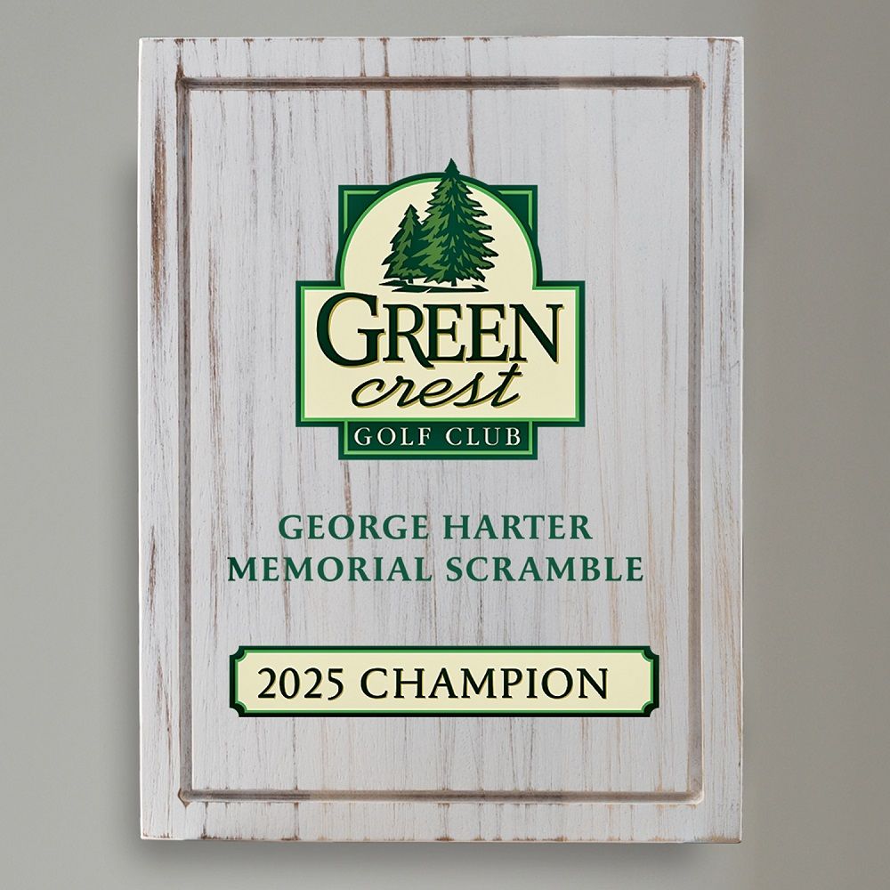 The Aspen Golf Award Plaque is a stained acacia wood plaque available in 3 sizes and either Portrait or Landscape oreintation. Your logo and text can be laser engraved or be in full color using a UV printing process. Hanging kit is included! Wood stand can be added for an additional cost.