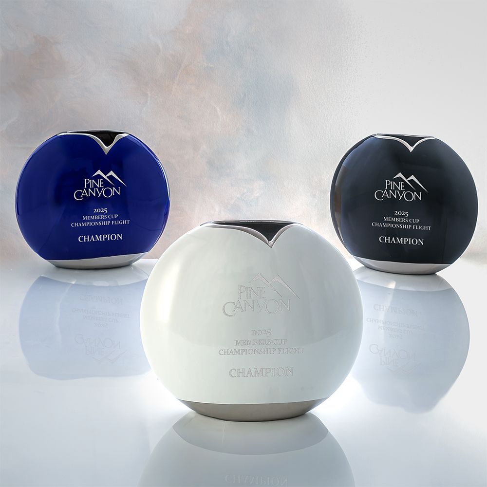 The Bacon Trophy Vase is a large and beautiful trophy made of ceramic with polished glazed finish. Available in three color options all standing 12.5" tall, this trophy will be a hit with your tournament winners! Your logo and text are carefully etched into this vase using sandcarving engraving process